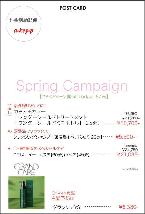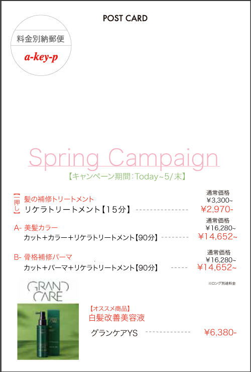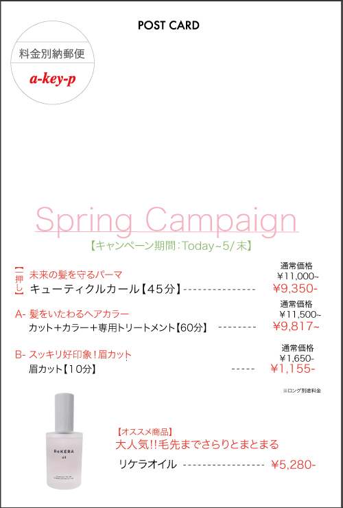 美容室 a-key-p(あーきぺんこ)グループの名古屋エリア3店舗で開催しているスプリングキャンペーンをご紹介いたしました♡